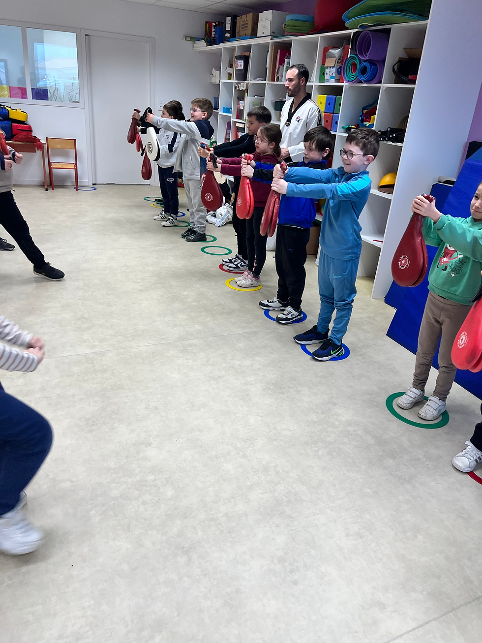 Mardi 10 février, deux animateurs sportifs de la Communauté de Communes, sont venus à l'école pour dispenser aux enfants une séance d'initiation au Taekwondo.